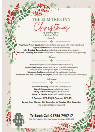 For us a two course Xmas menu is available. Mains and Pud. (menu attached)